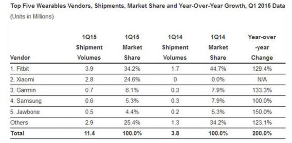 來源:鳳凰科技 原文標題:一季度全球可穿戴設備銷量增長2倍 小米位居第二