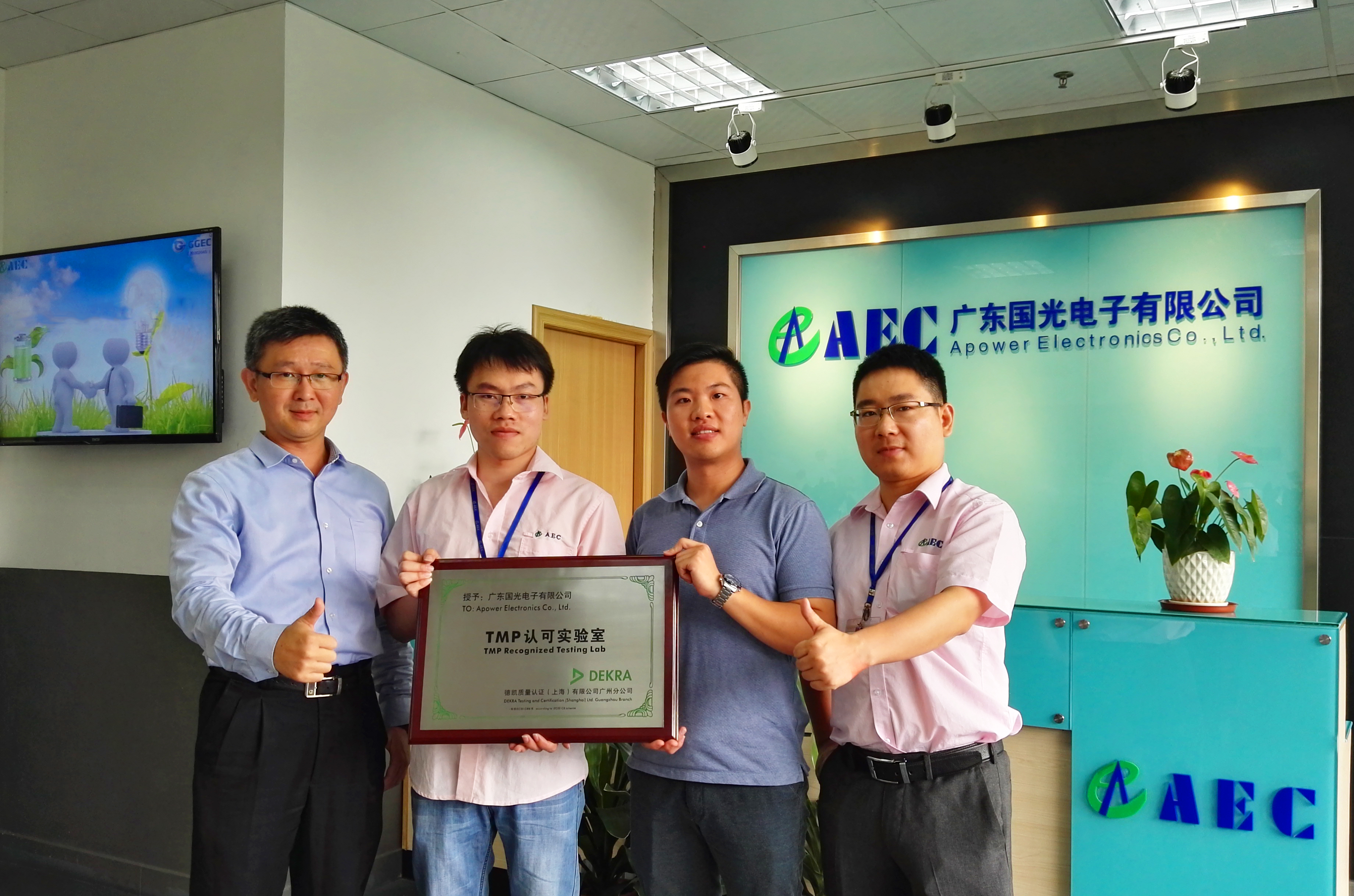 國(guó)光電子為保證其公司產(chǎn)品品質(zhì),做好客戶服務(wù)工作,特別成立項(xiàng)目小組建立“第三方檢測(cè)認(rèn)證機(jī)構(gòu)觀測(cè)實(shí)驗(yàn)室”,并與 DEKRA 進(jìn)行緊密合作。8月15日,國(guó)光電子榮獲由 DEKRA 授予的 TMP 認(rèn)可實(shí)驗(yàn)室資質(zhì)。國(guó)光電子獲得此資質(zhì),代表公司實(shí)驗(yàn)室的技術(shù)水平、測(cè)試設(shè)備、人員配備等方面條件擁有雄厚的實(shí)力。