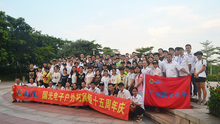 值國光電子邁向15周年之際,由行政部主導組織員工舉行以團隊戶外拓展活動為基礎的慶祝活動在廣州花都湖風景區舉行,國光電子員工約120人齊聚花都湖,總經理陳吉宏、制造部副總經理尹其敏、各部門經理主管參加活動與眾同樂。