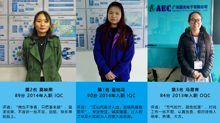 此次競賽的過程和結果,質管部 QE團隊將組織進行細致的分析總結,結合制定2018年培訓計劃,務求給QC技術員更有價值的系列培訓,秉持質管部“團結、開拓、務實、求精”的作風,為AEC品質把好第一道關,為客戶創造價值。