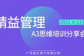 4月14日晚21點,國光電子精益管理的最后一堂課邀請到我司電芯制造高級經理:李力講授“A3思維培訓課件分享”,公司各部門經理、主管、工程師和職工代表共百余人參加。