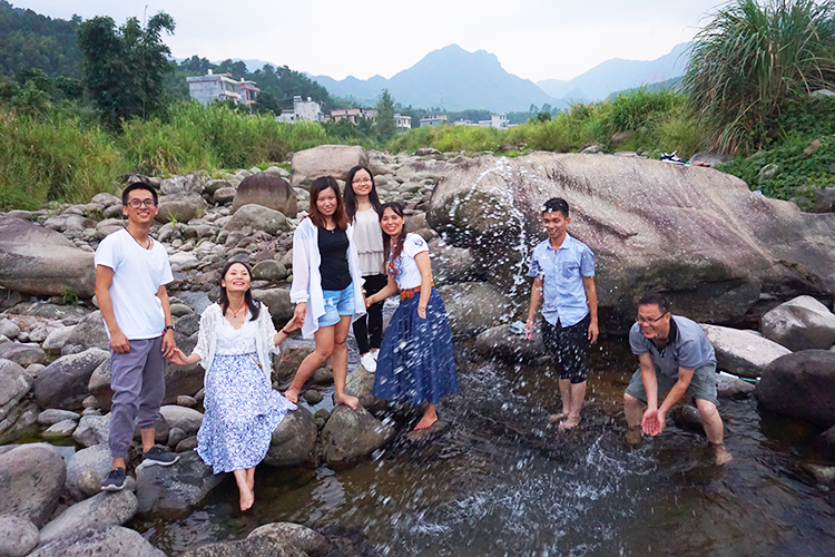 感受完瑤族的獨特文化后,出發去了燕子窩,開玩笑說是部門阿燕的家了,吃了一頓美美的大餐,在主家的院子里坐在涼椅上看著旁邊的大河塘,等待著大明湖畔的夏雨荷的出現。小憩之后部門另一個考完科一的小伙伴前來和我們匯合,也很為他感到高興,科一穩穩的過了。接下來我們兵分倆路,一路去買吃的,另一路去到我們住的農家樂鄉村小別墅探路,房子旁邊有清澈的溪水還有石頭,忍不住脫了鞋襪用最儉樸的方式去嬉鬧,一群人遇著一塊石頭都可以玩半天,各種搞怪,各種拍照,上演了一幕幕美女救英雄的場景。