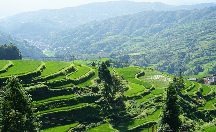 下午我們一起去了堂安梯田,層層疊疊的小塊水田,從最高處一層層流下來的山泉水澆灌著半尺高的禾苗,綠油油的一大片,我們不禁佩服起這里人民的勤勞,梯田之間是沒有馬路的,全部都是半米寬不到的坑坑洼洼的田間小路,所以汽車、摩托車、單車等任何交通工具都是無法經(jīng)過的,全靠腳下兩條腿,待稻子成熟后,收成后的谷子將只能完全靠人工背上去。一路欣賞著美麗的田園、小溪,古村古寨等自然風(fēng)光,非常愜意。這里的白天雖然紫外線很強(qiáng),但是有樹蔭的地方,涼風(fēng)習(xí)習(xí),讓人感覺休閑又舒適,晚上的氣溫只有22度左右,這樣的溫度出去散步是最舒服的,路邊的商鋪跟房子全部亮起了燈,此刻的侗寨又是另外一番風(fēng)景。